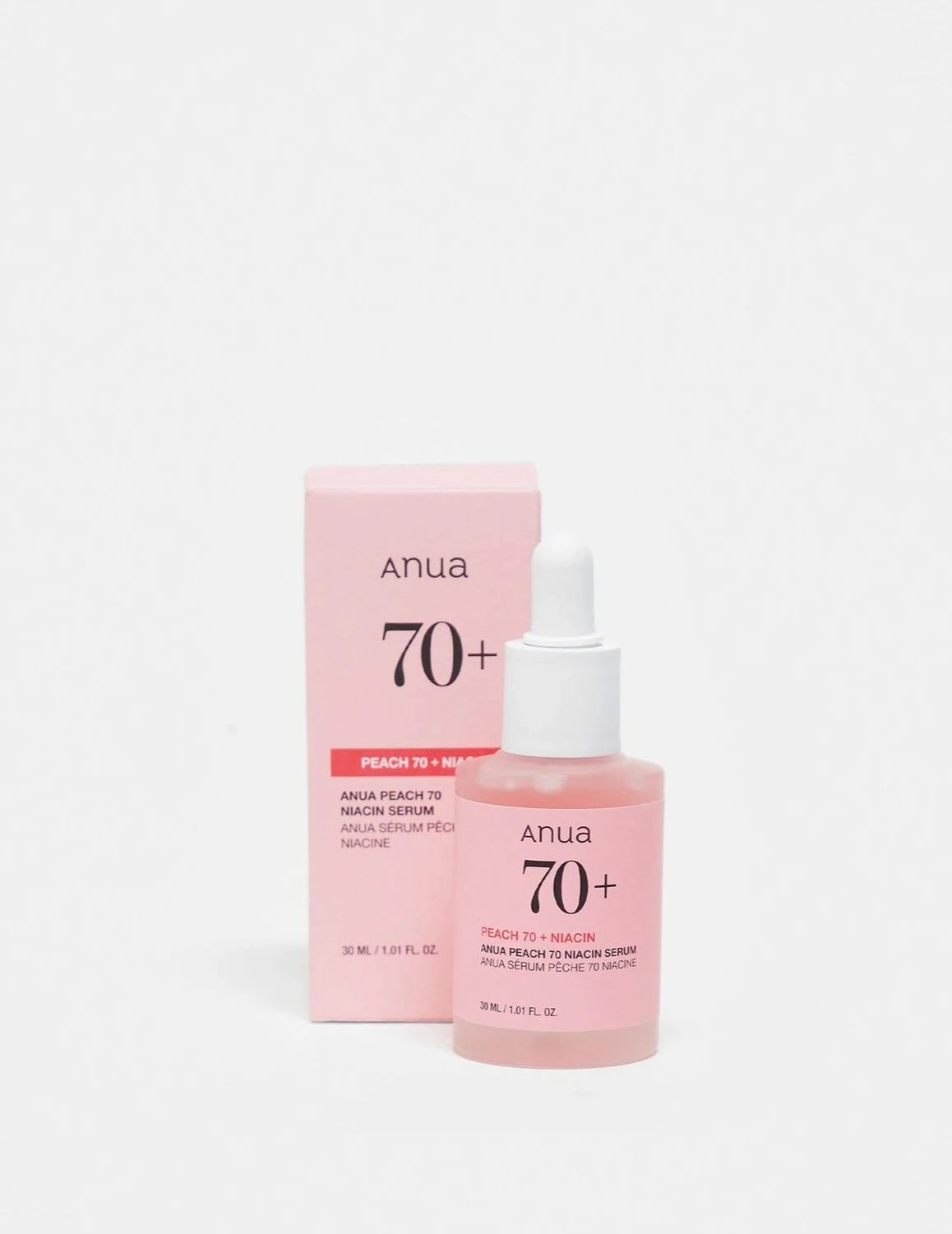 Peach Niacin Serum ANUA 70+ Niacin gently restores balance, repairs damage, and brightens the complexion without irritation. Its high concentration of niacin-rich peach extract ensures visible improvements in skin radiance and overall health.